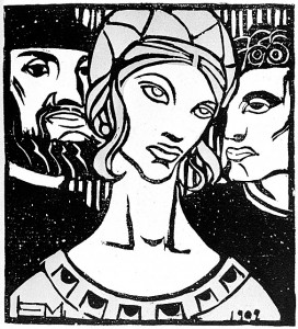 Elena Luksch-Makowsky (1878-1967) exhibited with the Secession and participated with the Wiener Werkstätte. Access to Secession activities was certainly easier because her husband, Richard Luksch, was a member; she functioned largely as an unofficial member (although without voting rights), exhibited in important exhibitions developed around the idea of Raumkunst (literally spacial art – an integration of art with interior architecture and design that was at the center of Secession activities during the first years of the Twentieth Century) and contributed all of the illustrations to one issue of its publication, Ver Sacrum. She also produced a ceramic relief for the facade of the Wiener Burgertheater (Vienna People’s Theater) and was known for her graphic work and book illustrations, which drew on her Russian background. She, too, was largely written out of the histories of the period and there is no monograph on her work.