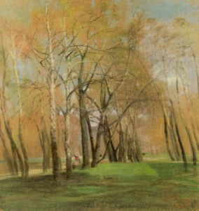 Tina Blau (1845-1916) introduced Impressionist painting to Vienna and became financially successful through her work. Her paintings were purchased by the Emperor and shown in solo exhibitions in Vienna and across Germany. She had a studio in a government-owned building in the Prater, Vienna’s popular public park, which became the subject of many of her best-known works. In 1882 when the French Minister of Art, Antonin Proust, visited Vienna and saw her work, he encouraged Blau to submit a painting to the Paris Salon; she did, and won an honorable mention. Blau was Jewish, and in 1938 her work was removed from public collection galleries and a street dedicated to her was re-named; for many decades she was unmentioned in histories of the city’s art. Her first solo exhibition in post WWII Vienna was in 1996, at the Jewish Museum.