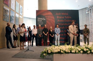 We did attend one very official and prestigious art event: the opening of an exhibition at the National Art Museum of China. The ceremony was very long and formal, made more so by the time needed for translation, ending with the cutting of red ribbons suspended between large bouquets of red roses and the subsequent entry into the exhibition spaces. The show, co-produced by Oxford University, featured the research of British art historian Michael Sullivan, who pioneered the study of modern art in China. Unfortunately for us, it was a very text-heavy show and none of the text had been translated from Chinese into English!