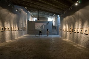 Even a bit further out is the Caochangdi district, which has some newer, hipper, and/or more cutting-edge spaces. Again in NYC terms, it’s Beijing’s Long Island City. Three Shadows Photography Art Centre is large and beautiful (founded by photographers RongRong and Inri, and designed by Ai Wei Wei), and is regarded among the top photo spaces globally. It was showing off its non-commercial orientation by dedicating all of its space to an exhibition of photographs by Che Guevara, complete with a simulacrum of 1950s Havana in the courtyard for opening night. We were brought there by Michael Cherney, an American photographer who has been living in Beijing for over twenty years, who was able to give us some knowing insights into the Beijing art scene.