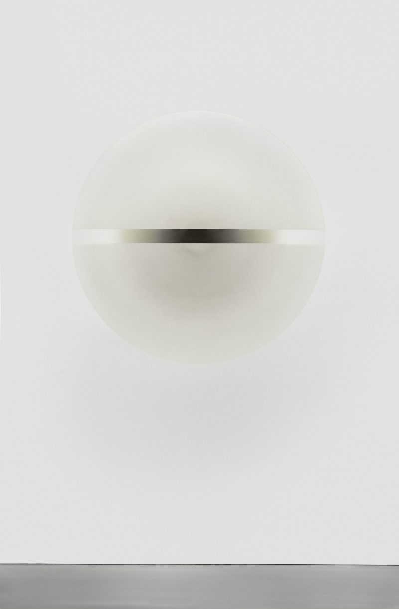 I had the wonderful experience of taking a dozen college classmates and their spouses through the exhibition recently. Only one person had any background in art history and none of them recognized the artist’s name. I explained that Irwin’s work takes time–literally, time for the eyes to adjust. They concentrated on the floating sphere bisected by a dark, horizontal line which disappears towards the circle’s margins–and the magic began. The painting creates a series of changing optical effects which it would be useless to try to explain, and because the effects depend upon presence and time, the artist refused to have his work photographed for many years–he has since relented. Anyone who knows Robert Irwin’s work only from reproductions has no idea of what the work is about.