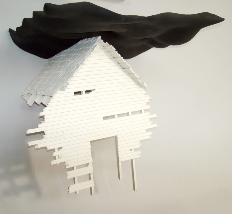 All is not as it seems in Shelter, Da Vinci Art Alliance’s current collaboration with the Philadelphia Sculptors group. The exhibition takes viewers on a volatile journey that calls the very possibility of “shelter” into question.