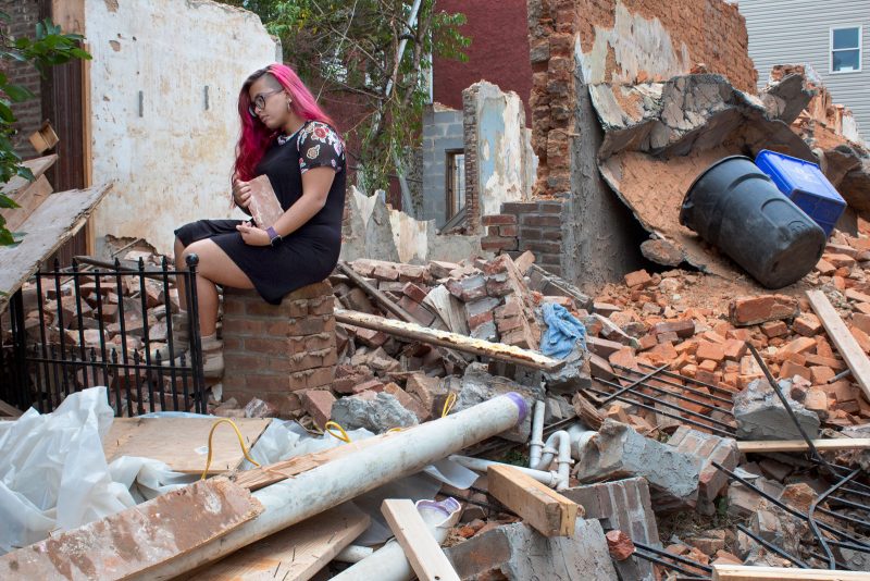 Tash Billington focuses on those who have resisted displacement here in Philadelphia. In her portrait series, “Philly Natives,” she takes photos of individuals who were born and raised in the city. Despite forces of gentrification, incarceration, and poverty, they have remained. Shasta Bady also looks towards Philadelphians for inspiration for her body of work, “As Above, So Below.” While travelling on SEPTA, particularly on the Market Frankford Line, Bady waits until someone captures her interest and then takes a photo. The portraits are at times surprisingly intimate and show the vibrancy that each human holds — something that is easily overlooked when travelling on public transportation.