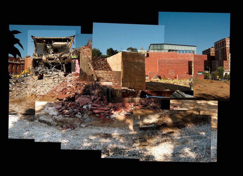 The demolition phase of the project took up the better part of the fall. There’s something almost poignant about a building being razed in autumn. It’s poetic, apropos the cultural and natural signifiers of death and decay momentarily merging in this ever-so fleeting moment, the falling leaves like so many bricks. And the dust! Ominous clouds of fine particulate matter blow out from the site, well beyond it, settling upon everything in their path like an almost imperceptible blanket of snow.