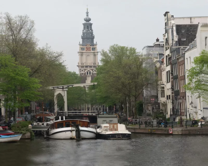 What the PMA does have on display in the Toll Gallery on the second floor is Claude Monet’s The Zuiderkerk, Amsterdam (Looking up the Groenburgwal), painted in 1874. Interestingly, the museum’s website says that it was “probably” made in the Netherlands. Well, I can tell you that it was “definitely” made in the Netherlands, or at least it is a studio work made from sketches made in the Netherlands. The view is towards the Staalmeestersbrug Bridge as seen from Amstel.