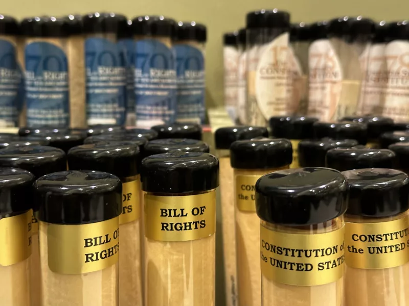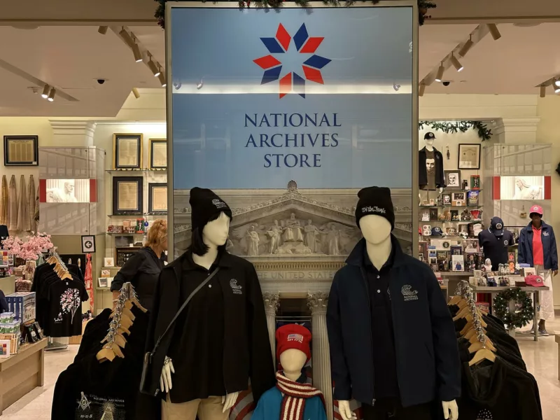 Once inside the National Archives Museum, I quickly located their gift shop and began to enumerate the many items for sale there. As with the Postal Museum Shop, the merchandise sold at the National Archives Store is an extension of their collection: poster-sized reproductions of the Bill of Rights and Lincoln’s Emancipation Proclamation; a facsimile of the Resolute Desk from the Oval Office; presidential socks; and a Bobblehead Trump.