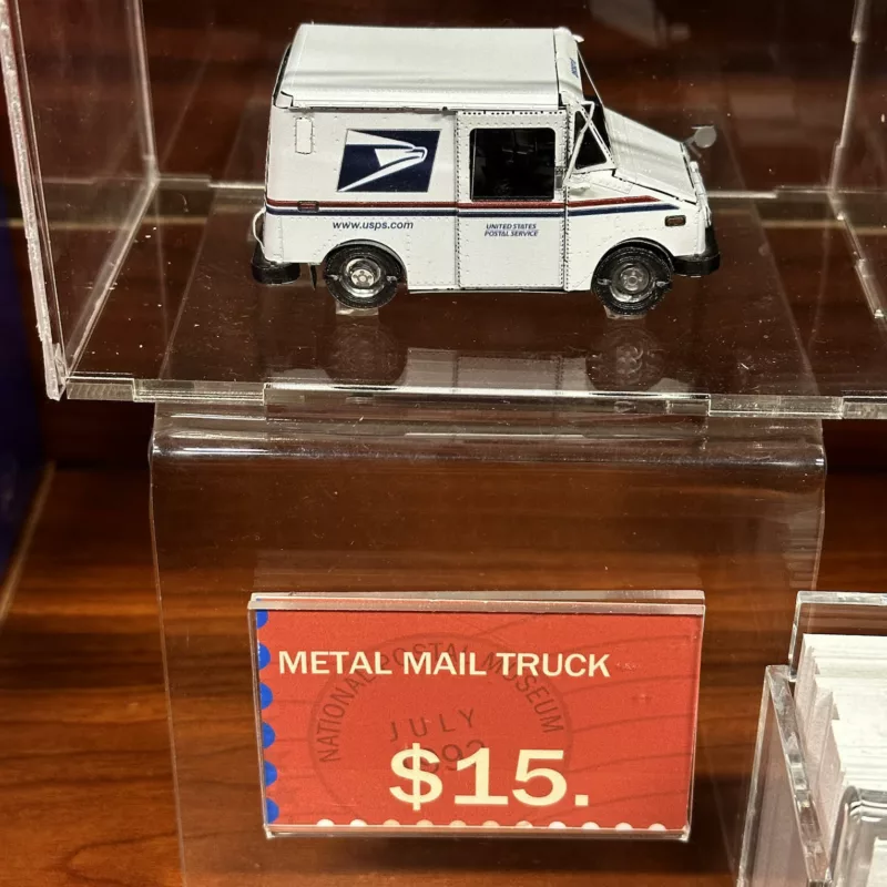 Other than stamps, you can purchase all sorts of postal-related merchandise. There’s the classic U.S. Mail nylon cap with eagle logo, for example. Or, for $15, you can buy a miniature metal mail truck, the perfect gift for a youngster. Further inside the Shop, you can find a whole bunch of books on the history and culture of the United States Postal Service, such as The Address Book: What Street Addresses Reveal about Identity, Race, Wealth, and Power by Deirdre Mask and Delivered under Fire: Absalom Markland and Freedom’s Mail by Candice Shy Hooper.