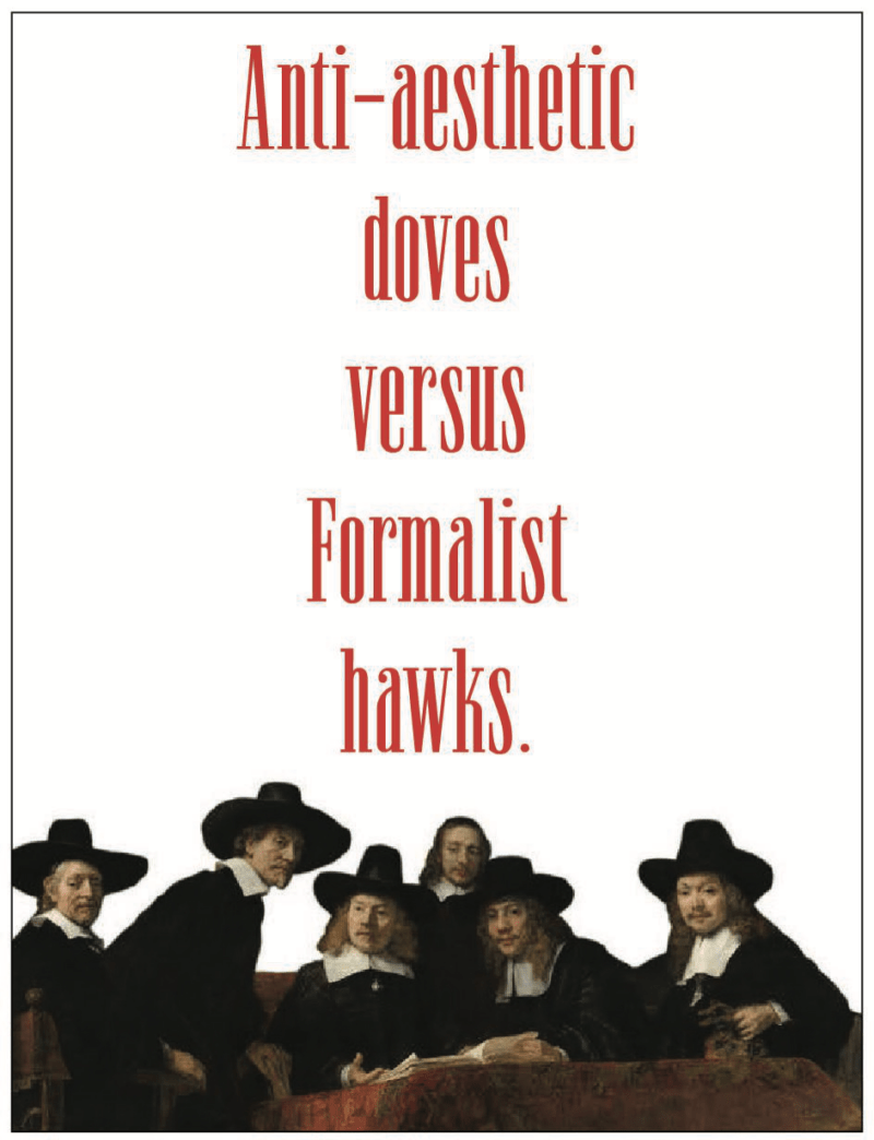 Harris’s work embraces bold “anti-aesthetic” qualities, and is not produced to make all of its viewers feel good. He rightly calls out Handel for, “buying and selling shares in the Royal Africa Company” (p.6) and proclaims more than once, “Clement Greenberg’s forked tongue eats people” (pp. 11, 16)–in the latter case buffering critique with comedy as well as can be. Harris’s “Surgeon General’s Warning” (p. 7) suggests what’s inferred in Harris’s works are not good for the public’s health, even as he knows messages conveyed in his work need to be projected.