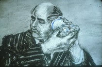 Although both Neshat’s and Blake’s pacing are slow, slowness doesn’t seem to be the critical factor. Someone who moves quickly through his storytelling with quick-cut editing, yet still leaves room for contemplation, is William Kentridge (left). The drawings, with their surreal touches, open to question why Kentridge has chosen the look and method that he’s chosen, why he’s gone to a cartoon-making technique for the most serious of subjects, why he uses erasers and not fresh paper for each frame, and why he doesn’t use cels.