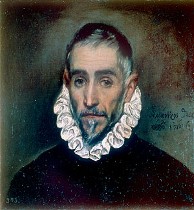 His portraits bring to mind the portraits in the MoMA show, Velasquez/Manet, and place Velasquez in less of a ground-breaking role than the MoMA show implied. The realism and psychological depth of Velasquez’s faces, the dark, ambigous backgrounds, all made it into El Greco’s work.
