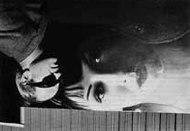 (Here’s an image of James Rosenquist that appeared in a New Yorker review by Peter Schjeldahl Oct. 27, 2003. It was photographed by Dennis Hopper, in a billboard factory in Los Angeles in 1964. We like it better upside down. Notice Rosenquist’s resemblance to a young Andy Warhol this way.)