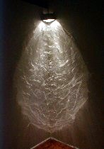 One of the two people who tipped me off to see this piece was a neighbor whose Halloween spiderwebs on her front porch are noteworthy for their sculptural drama. I thought there was a resemblance in the webby white filament affect.