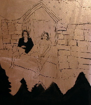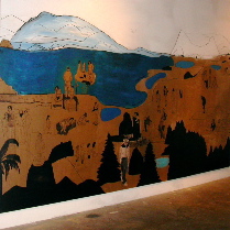 Jessica Doyle’s installation — wall drawings, video projection, potted plants and a little garden fountain — weaves together the fact and fiction of a life. There’s myth-making in Doyle’s wall drawings, which lent a kind of Lascaux cave strangeness. (images above and left are details of Doyle’s wall drawings) As for the video, (in which you see what looks like home movies of the artist and her baby daughter growing up), it felt like truth.