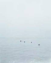 Catharine Opie’s photographs of tiny surfers and the big, grey sea, featured in the Whitney Biennial, bring us back to picture-making about the sea. Manet’s not the reference here. Celmins may be. (bottom image is Opie’s c-print “Untitled 3 (Surfers)” 2003)