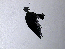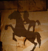 As with most everything else in Walker’s world, the dancer was back-lit and her body became a flat silhouette. She danced the jerky steps, her legs and arms a constant flow of up-down, spin around motion. Because the video had been speeded up, the jerky motion was accentuated and the dancer seemed a marionette doing a kind of St. Vitus’ dance. At the end, she’s so tired she has to pick up each leg to move it, but she keeps on moving.