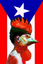I asked Maldonado about the streak of anxiety about terrorism that runs through his “Blueprints for a Nation.” He has invented an anti-terrorism aerosol spray and some fictitious bodega bombers who run around his “El Spirit Republic de Puerto Rico” causing trouble. (See my previous post on Adal, and see his website for more). (all images from Maldonado’s website, top is “Auto portrait: Pelea de Gallos”)
