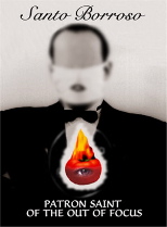 Both the aerosol spray (to attract love and combat terrorism) and the bodega bombers, seem in tune with the events of 9-11. I found their inclusion with the other tongue in cheek inventions somehow more poignant than the rest. (image left is “Santo Borroso (Saint Blurry)”)
