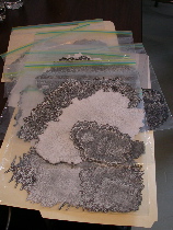 The fragments, some light, some dark, were like face topographies waiting to be assembled. I loved them in the ziplock bags. They spoke to me of archiving and saving and the interweaving of daily life and the sacred . I got a chill looking at them. I don’t know what they’ll be like outside the bags. The artist needs to figure that out. But what I saw made me want to see more.