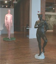 “Ambisexual,” (the pink one in the rear) with an inch of red penis (Hedwig?) and the small, perky breasts of a 13-year-old girl is more than 8 feet tall and plain old upsetting to look at, its pinkness picking up the kind of realism and loss of idealism that have made modern sculpture tough to look at some of the time.