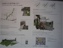 It was a grad student at Penn who suggested the viaduct might make a good charette. The student, who had participated in the Penn’s Landing charette, approached Harris Steinberg, executive director of Penn Praxis, the clinical consulting arm of the School of Design, with the idea. Steinberg said he got the go-ahead, and arranged for a four-day charette (or planning blitz) for 11 or 12 teams of four or five students each. Four of the groups’ plans were on display at Cafe Lift, including “Campus of the City,” a proposal by Michelle Cheng et al. for an above-ground campus that linked together buildings that might include classrooms in them (shown).