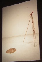 And there’s also a touch of boyish romance–a love of the old music; a love of the ’60s. Robleto uses vinyl dust from Bob Dyland and Jimi Hendrix, for example, cast with prehistoric whalebone dust in “Hippies on a Ouija Board–Everybody Has to Cling to Something” (right)