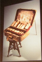 The piece is a hand-carved old-fashioned valise, stuffed with a cast Ouija board (for talking to the dead) and old-fashioned homemade nostrums in bottles carved from bone. What’s he thinking about? “Hippy problems–arthritic joints, loss of hope.” Dario, you’re such a sweetie, but please don’t write me off yet. I’m not quite ready to succumb to depression and skeletal failure.