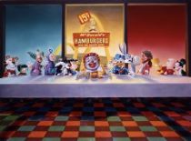 Parodic paintings by Ron English knocking the McMarketing of food and toys and featured in the recent documentary “Supersize Me,” have been converted into a portfolio of giclee prints titled “The MC Supersized Portfolio.” (image is “Last Supper,” with McJesus in the middle surrounded by tv cartoon favorites. There’s a McStarry Night parody as well.)Publishers Tin Man Alley (which will have a show of Ron English’s work opening August 21) and Lineage Gallery are making the 4-print portfolios available now. Here’s more information from Tin Man’s Jonathan Levine: