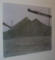 By choosing places and moments with even lighting, so even that they give the illusion of objectivity, Abrams is making photos that are highly subjective. His subject matter here is landscape, and about how technology creates landscape (left, “Rock Piles”). But the photos, which are made with an analog 4×5 camera (it’s hard to make such large prints with a digital), are also about photos as flat spaces. He is avoiding anything narrative in these images. Unfortunately, I think the images need to tip his hand a little more. Right now the images look as objective as he says they look. There’s no hint of the subjectivity that might be there. It’s how they look that counts.
