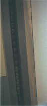 Yun is trying to pay attention to her everyday environment, using everyday materials elevated to art. She said she had a professor once compain about “Home Depot art,” but almost everything she makes is from Home Depot, she said. She’s attracted by the utilitarian quality of the materials. But what she does is make her viewer notice, too–the reflected light of a color, a scent emanating from a small space, an ordinary outlet, the traces of a spider that lives inside the outlet (right, “Get Your History Straight” detail).She likes to offer surprises and treats, and in the piece with the scented markers embedded, she pictured people swiping their noses along the opening like an ATM card. She also liked the feeling of violating the sculpture’s space.