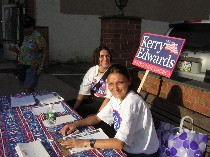 For all that bad news–another assault on gallery-owners’ livelihood by the morphing city–people put up their pro-Kerry voter-registration table (right) near Nexus and the Clay Studio, and tourists gathered around the door to the former “Real World” residence, trying to catch a glimpse of I’m not sure what.