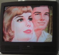 Robert Arnold in the Video Lounge offered up several short films and videos, of which I saw three. One of them was the perfect, ideal romantic kiss. (I could really confuse things here and call it Platonic but that would confuse everyone, because the coupling here was anything but Platonic in that other sense). “The Morphology of Desire” (image, top), from 1998 was laugh-out-loud funny, with borrowed images of American-brand idealized men and women from romance magazines and bookcovers morphing to create a rhythmic sexual coupling, starting with longing looks and climaxing in pulsating motions, all to a heartbeat soundtrack. These particular “ideals” have been manipulated to undermine themselves.