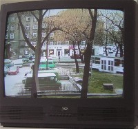 “Echolalia” (2003) offers television-screen captures of politicians and pundits saying the words weapons of mass destruction (with some variant versions like biological weapons), thereby revealing the power of the repetition to create fear. Although W, who talks to God when he makes his decisions, was the star of this one, he was not alone. Even the liberal Sen. Joseph Biden made an appearance (since he’s a regular on the TV news talk shows). The name of the film is of course a term straight out of the fundamentalist, Bible-thumping culture of speaking in tongues. We’re witnesses here to a national, media-generated self-delusion.