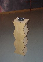 His “Electoral College Mascot” (left) is a bug-shaped map of red and blue puzzle pieces that passes for a heart (not quite Bo Bartlett’s Heartland, is it?) and is based on the Don’t Tread on Me snake. “Idle Hands (Endless Night)” is a cheesy, wall-paneling version of Brancusi’s endless column with an ashtray on top, filled with faux cigarettes (right). It’s the all-too-material version of Brancusi’s sculptural ideal.