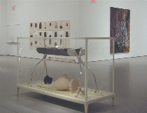 In the contemporary section (right), the proximity of Matthew Barney’s “The Cabinet of Baby Fay La Foe” (front) Lorna Simpson’s “Wig’s Portfolio” (back left) and Sigmar Polke’s “Watchtower, 1984” suggested a theme of inhumane treatment of people.