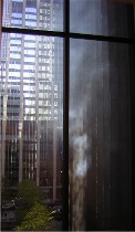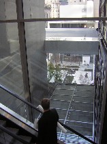 The good news about MoMA’s new building is that it no longer is like a casino or a big-box mall, blocking out all of the outside world to dupe you into believing that what you see is everything and that you’ve gotta have it (image, steam rising up the side of a building outside a MoMA window).The truth is, great art, unlike consumer goods, doesn’t need to be replaced in a few years, and therefore doesn’t need any architectural illusion to elevate it.
