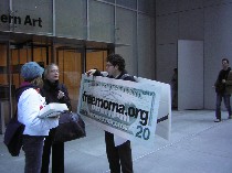 Outside a young man and woman from FrEEMoMA.org were picketing against the high cost of museum admission, now $20.