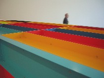 By the way, there seems to be a lot of Donald Judd. I take this as a curatorial statement of his importance. He’s got a newly acquired piece with Playskool colors–a box about the size of an industrial dumpster–that won’t let you play with it, but will let you feel small by its side (left, detail of top of the piece).