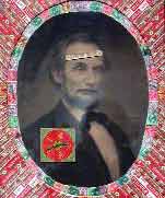 The artist liked to mock the American presidents and George Washington and Abe Lincoln appear throughout, their heads collaged on improbable bodies or — in the case of Lincoln — his lips enhanced with what looks like red lipstick (top image).
