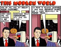 And for a dose of something a little more sour, try Tom Tomorrow. Here, the penguin is dressed for Halloween as something really scary — a (Diebold) voting machine. Read the whole cartoon here courtesy of somebody’s personal list of comics and humor at MIT.