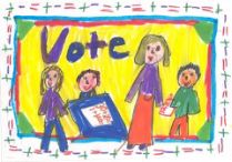 Like Libby, I’m poll watching today in my neighborhood. I thought a little shot of optimistic kid’s art might be good this morning. (image is postcard made by kids at Heritage Middle School, Livingston N.J.)