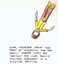 The text (if you can’t read it) says “Dude, whoever wrote that part of “Sympathy for the Devil” where they go “Woo Hoo” for like, forty minutes straight is a fucking genius.”