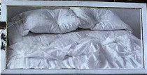 The pillow piece “Ah…Felix” by artist Marisa Telleria-Diez (Nicaragua)(image left) pays homage to artist Felix Gonzalez-Torres (image right) and references his untitled photograph of two pillows that was displayed on billboards in NYC in the early ’90s.