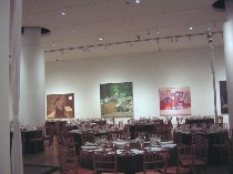 The downstairs space, which looked like it would take up about 1/4 of a football field, was filled with tables and chairs for the next day’s gala, so it was tough to imagine if the art would look good once the tables and chairs were gone. We couldn’t back up from the art. We couldn’t move close to the art. Roberta nailed it I think when she said it was kind of like looking at slides of the art. But the tables and chairs are only temporary.