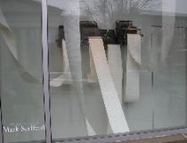 (image is Mark Stafford‘s Window on Broad installation — up now — a typewriter and text piece featuring the phrase, “the quick brown fox jumped over the fence,” almost enough times to compete with “The Shining’s” “All work and no play makes Jack a dull boy.”)