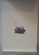 Ahn’s work was part of a group show including pumped-up specimen portraits of bees by Talia Greenee, clown Xerox-transfer prints more notable for their method than their content by Candace Vivian, tiny, sweet quilts and woodblock prints by Katie Baldwin (I’ve seen better work from her elsewhere), and collage and assemblage by Brielle Duym (right, Greene’s “Augmented Bee #6”).