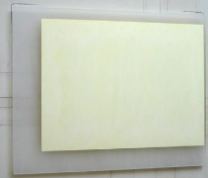 (image is a soft, yellowy white painting by Finklea from his Thatcher Projects show.)