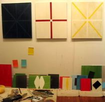 On March 31, I received an e-mail from “Roseann Muller” inquiring about the purchase of my work. It seemed she looked at my website. Through the course of several e-mail exchanges, she selected two pieces, which she said she wanted me to ship to her parents in Nigeria for an anniversary gift. I gave her the prices of the paintings and cost of the shipping. She accepted the prices & the shipping costs. It was going to be a rather large transaction. She desired to pay with a credit card. I assumed I would handle the transaction by setting up a PayPal account (though I did not indicate this to her). (image is a studio shot Witmer ran on his weblog. It shows new paintings commissioned by the artist’s church to hang in the church over Easter)
