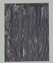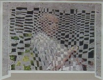 Marcy Hermansader’s solo show there, “One Thousand Subtractions,” was about her father’s mental deterioration from Alzheimer’s. Using the interiors of security envelopes, she interweaves images of her father, suggesting missing pieces and disintegration. Some of these were stronger than others, but it seemed like an exercise, plus I found the subject so depressing, having lost my own mother to dementia, that I could not find a way to enjoy this work (image, “Wavy,” woven color xerox, 9 x 11 7/8 inches, 2003).