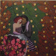 At Rodger LaPelle, Peggy Reavey’s “Women Who Hum and Men with Trees” exhibit of surreal paintings have strong moments when the patterns and textures and weird space take over. Here’s “Prom Night in Eden.” LaPelle mentioned that Reavey is the ex-wife of David Lynch, who used to work at the gallery (hey, not so recently). Also showing there were assemblages by Harvey Weinreich.