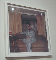 Regine Repale’s “La Miche” stood out from her other work for any number of reasons. I liked the stripes and the plaids, which play out over and over in the room. I liked the space behind bracketed by the drapes. I liked the addytood of La Miche. The picture reminded me of the Malick Sidibe photographs in the African Art show at the Art Museum (see Sidibe’s photo here).